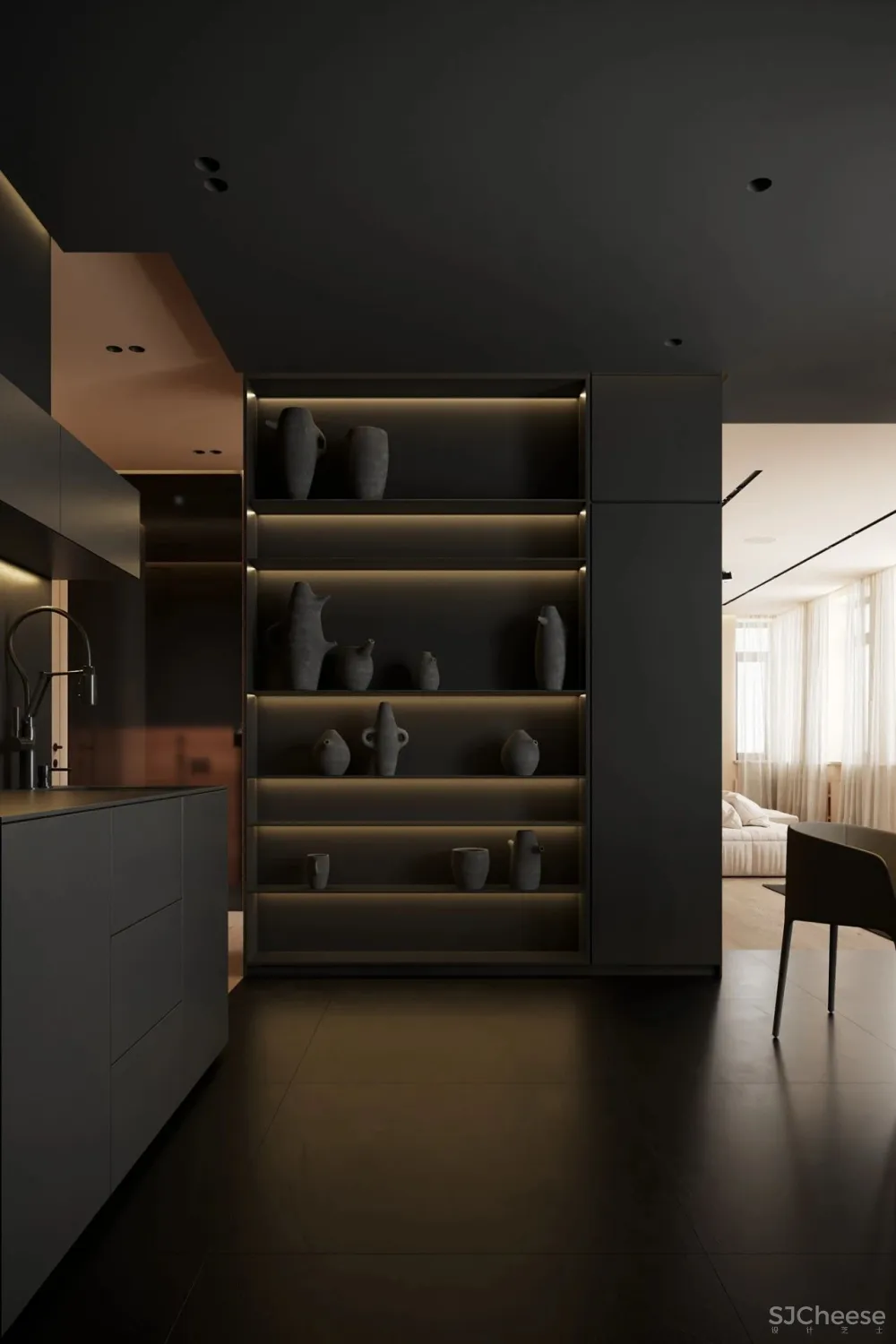 你心目中的理想住宅是什么样子的呢?一般人多半向往格局方正、明亮乾净、动线流畅的家。然而,对室內设计来说,设计不应该被特定框架与色系局限。Igor Sirotov设计的这个项目,有着强烈的个人风格表现力,室内设计中把黑色用得好,不仅有个性、酷帅,更能凸显出高级感。