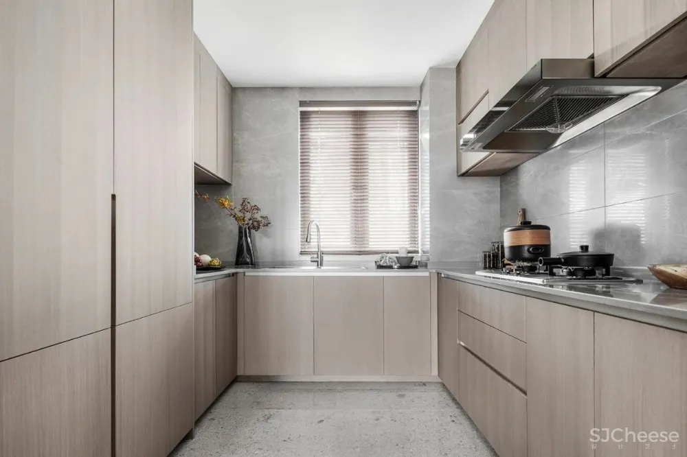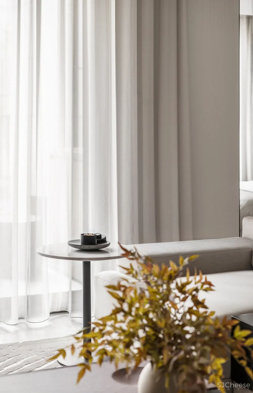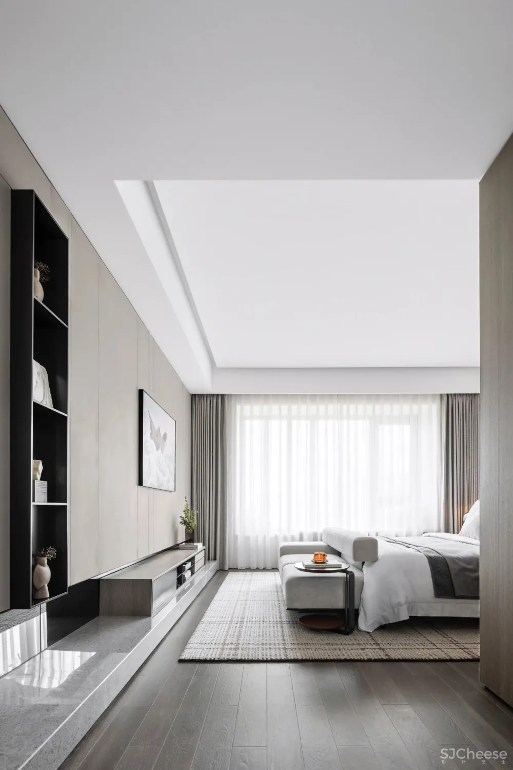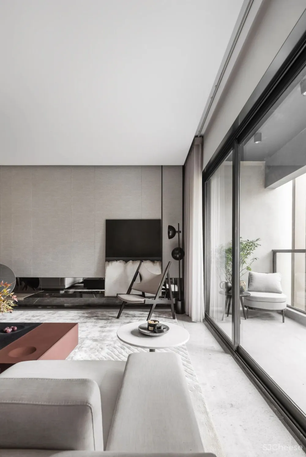 简洁有序的空间布局,暗隐内涵沉稳之气度,让人产生「乍见之欢,久处不厌」的眷恋之情。简洁到不掺杂一丝冗余的块面,意味着居住者内心的充盈和从容。