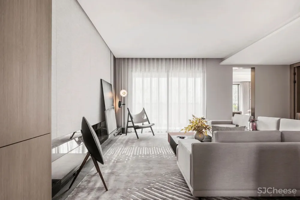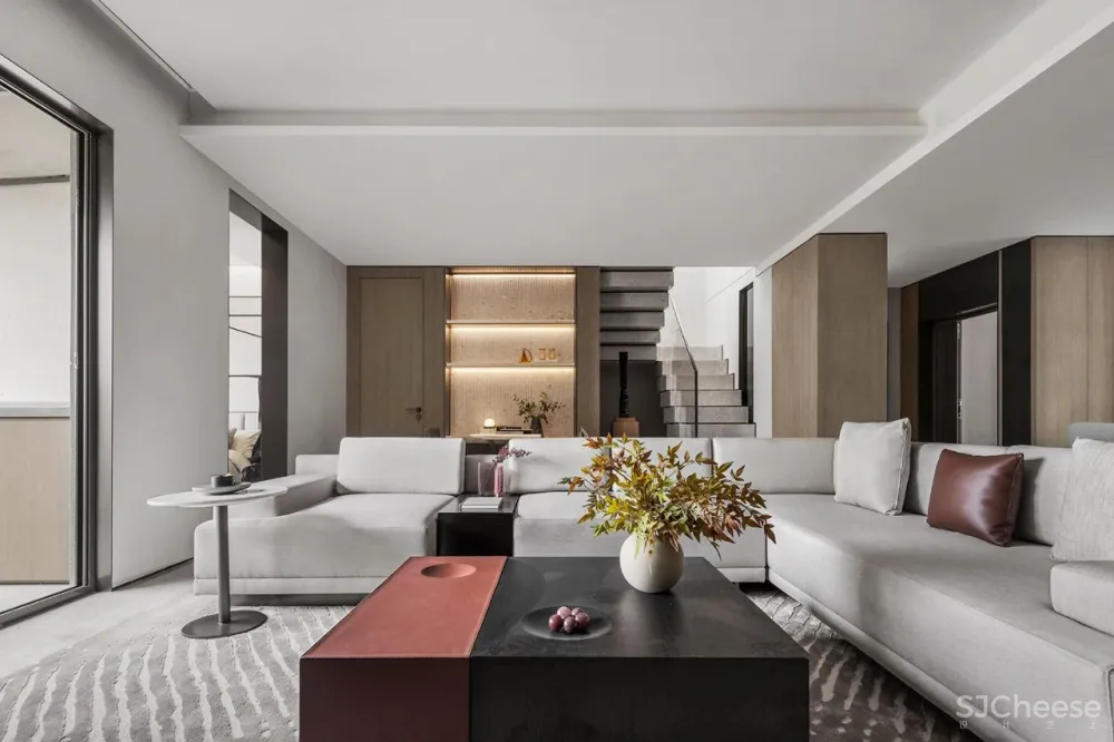本案在精工细作的现代风格下,柯翊用美学的态度处理每个空间的关系。融合对家具的考量,让空间更具秩序感和仪式感,展现灵活手法下,功能性、人性化墅居生活真实的美学价值。