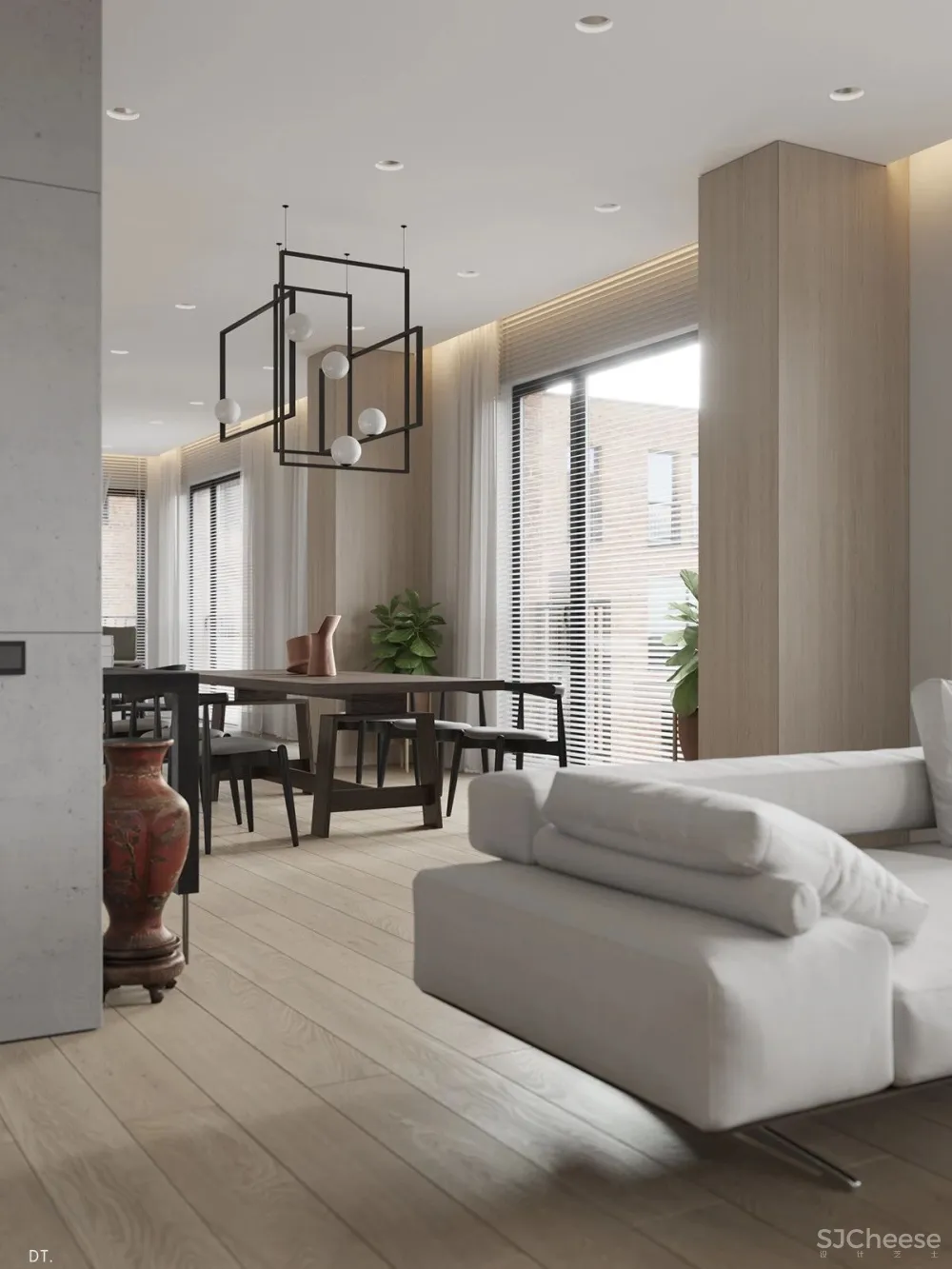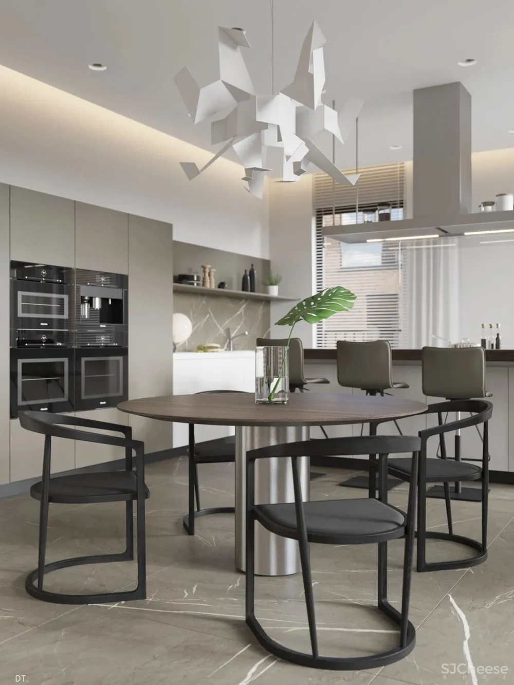 餐厅的餐桌椅原木质感,显得端庄而又现代大气。