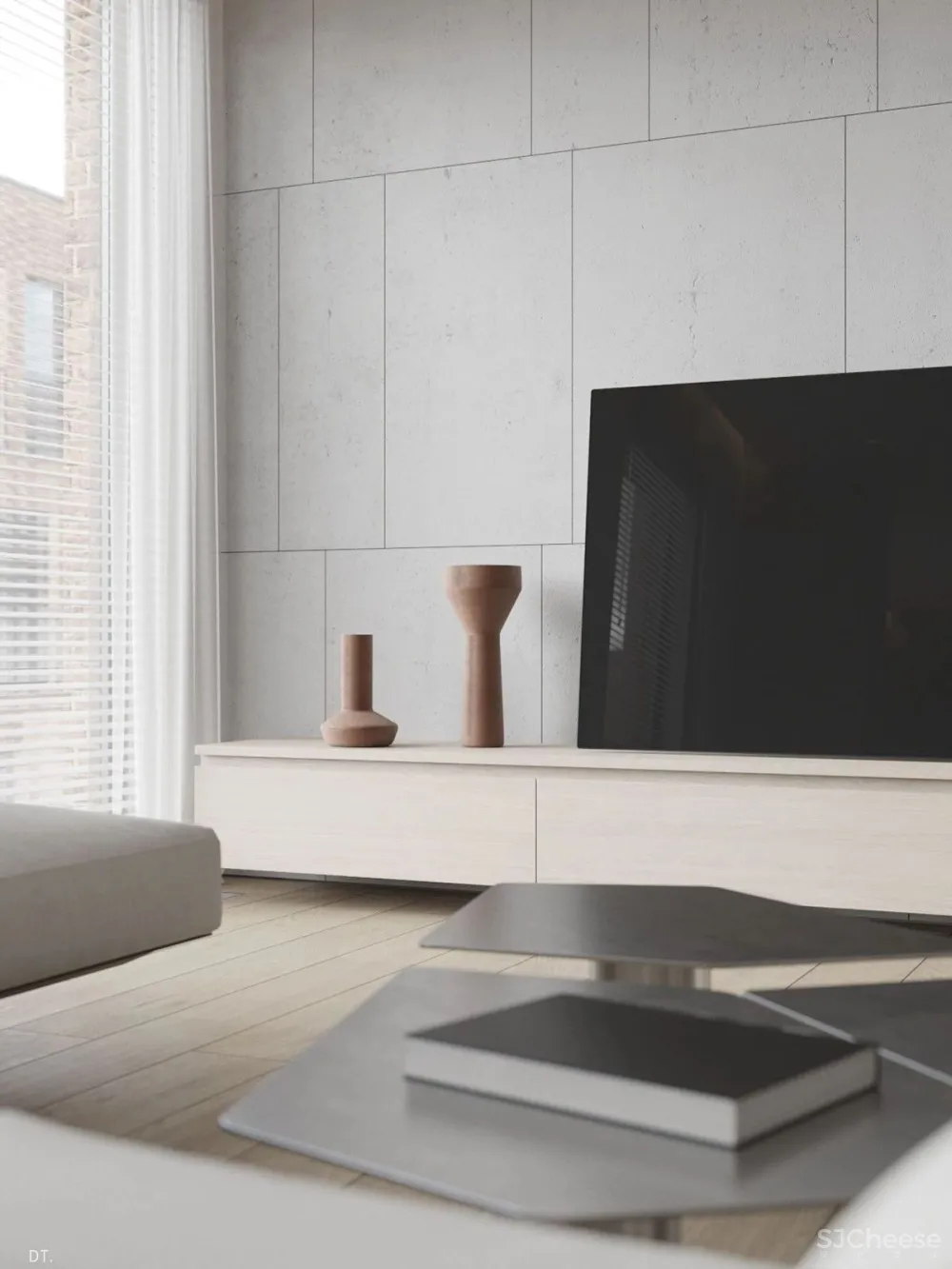 几何形的茶几,搭配一张简约沙发,结合浅色原木地板,整个空间都显得格外的年轻极简。