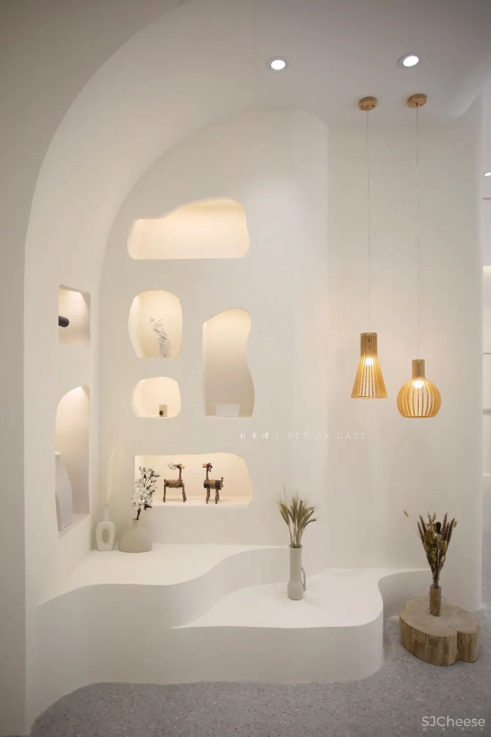 Pure white space produces the relationship of space contrast and enhances the atmosphere sense of the whole space