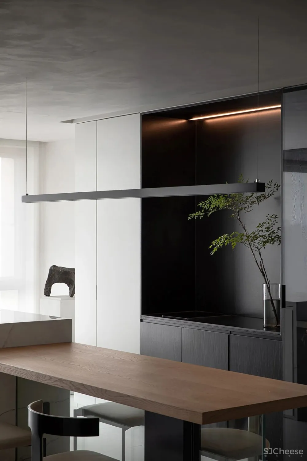 让空间产生距离,以此来探讨物与物之间的关系,通过“间”的对话,空间仿佛拥有了生命力。
