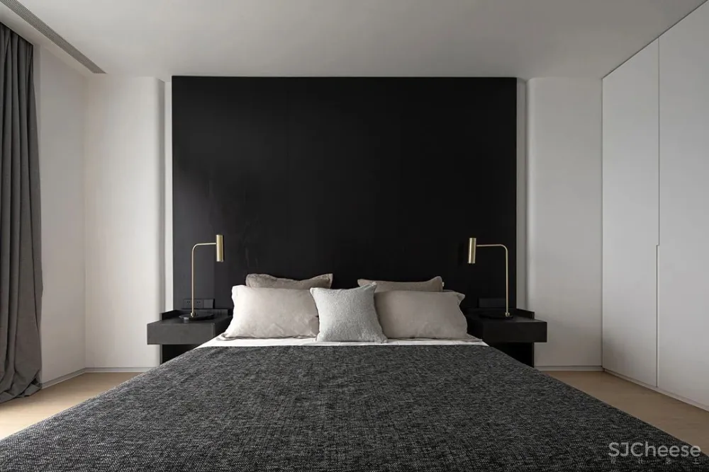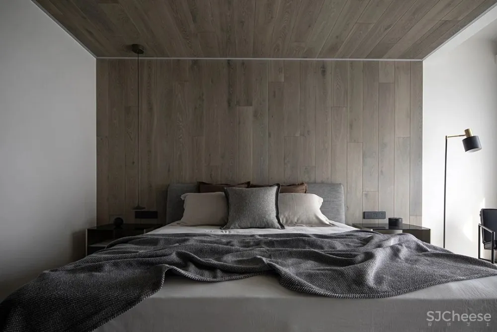 私密性以及舒适度对卧室来说十分重要,选用素雅的配色与纹理材质做搭配,安静内敛。