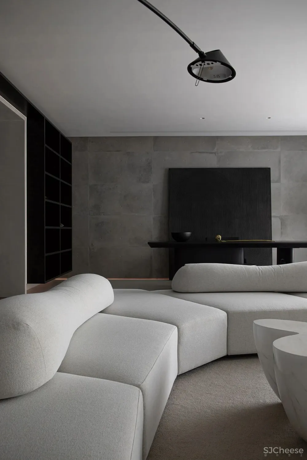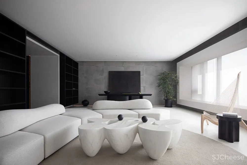 从中国功夫元素中提炼黑白灰的色彩,融合东方审美与禅宗思想,散发出静谧、素雅的格调。 空间犹如一幅流畅的画卷,每个角落在光影流动间都能产生种种诗意。