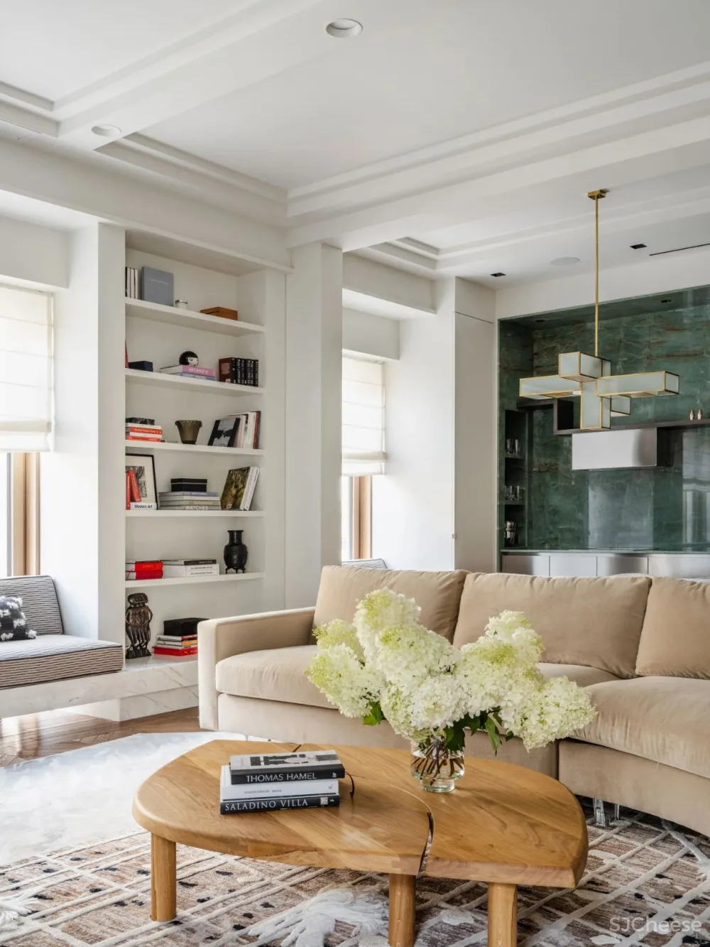 Originally, there were two independent apartments that Malyeva transformed into just one. Located in Moscow’s central district of Hamovniki, the spacious and bright space — thanks to high ceilings — features new volumes where comfort and tranquillity pervade.