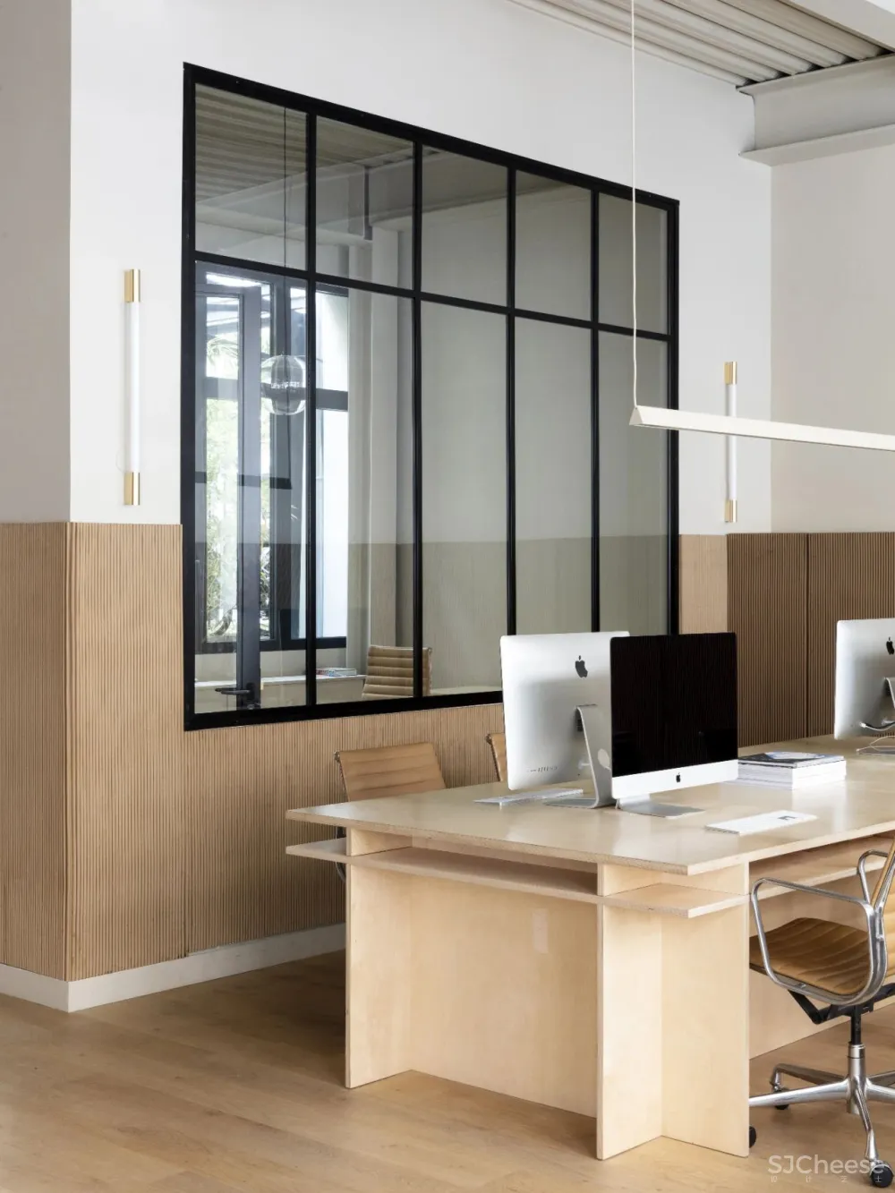 我们在单色的ton-sur-ton调色板上玩耍,混合了强烈的图形细节,精选的饰面和老式家具,从而营造出舒适顺滑的内部空间,一个让您感到工作舒适的包围空间,并且您肯定知道 Everest无处不在。