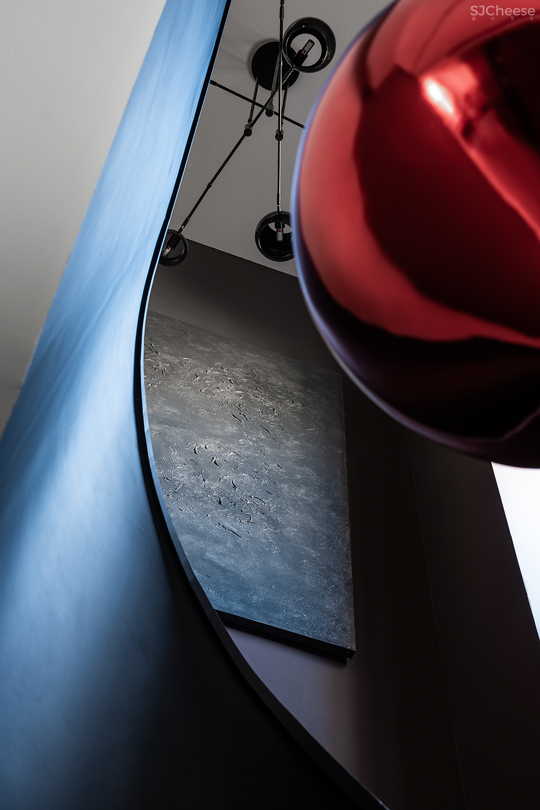 线条与曲面的处处碰撞,在力求干练与极致感性中平衡,色彩的大面积深沉与点睛处引燃,亦是异曲同工之妙,共同指向居者不拘一格的多元化主张。