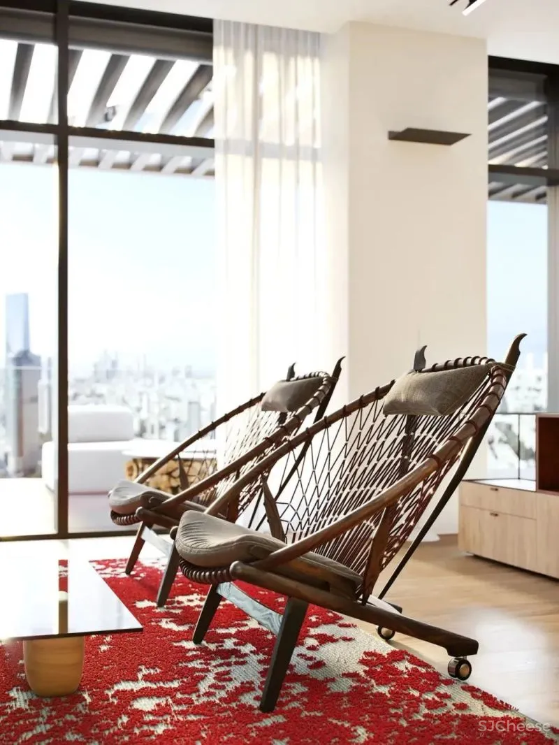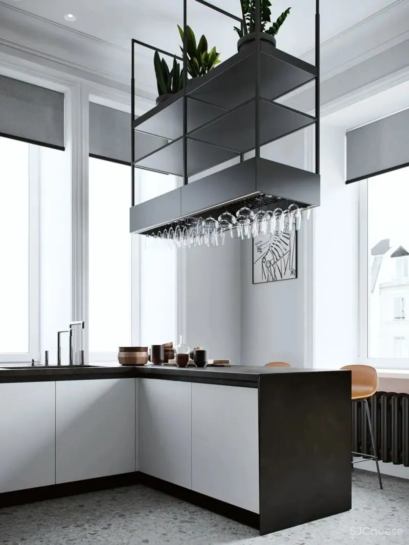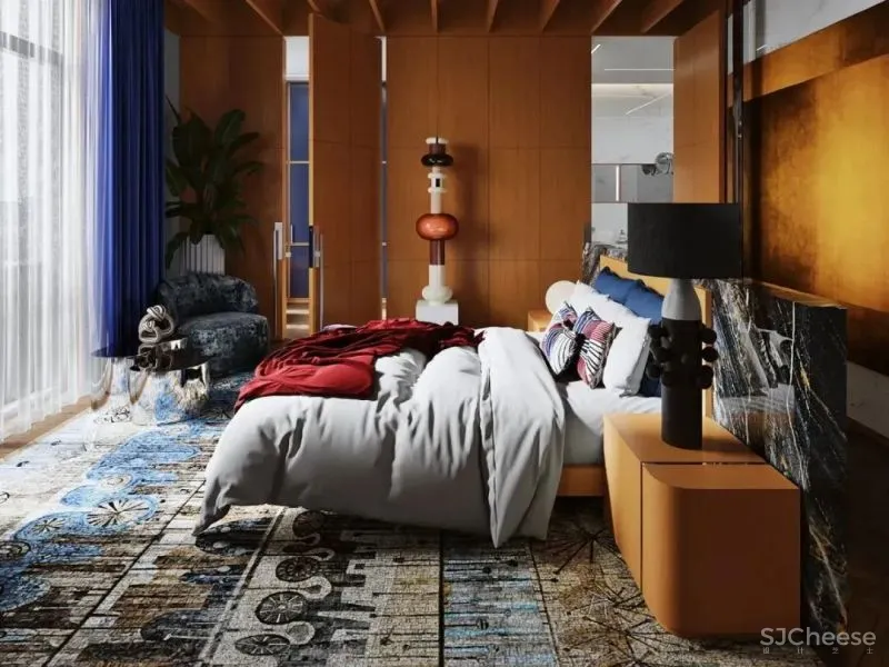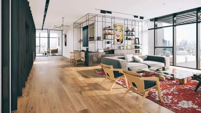 客厅、书房和卧室之间用了旋转木门做了分割,充满了神秘感。