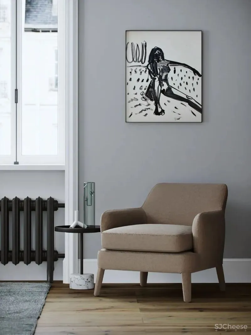 客厅的每一个家居都是独具特色的,装饰柜上的挂画,像给客厅多加的一扇窗,多了一道风景。