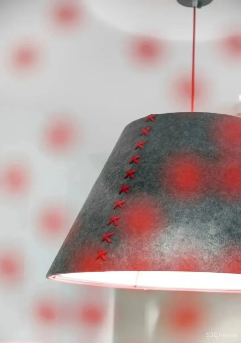 以“微笑的嘴角”平面意向出发,连续运用的冲孔板材料搭配品牌主视觉的红色灯带,特别设计定制了同概念的装饰灯具,为整个办公空间奠定了专属亲亲的独特氛围,也助力每一位使用者在空间内不断创造不同的工作喜悦和日常感动,体现亲亲“不断创造喜欢和感动”的价值观。