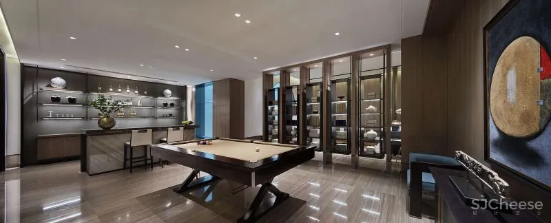 整栋别墅共有六层,将公共空间和私人空间有效区隔,并在地下二层娱乐层区的左右两侧分别打造品酒区、健身房、影音室、SPA区等自由生活空间,满足主人的多层次需求。