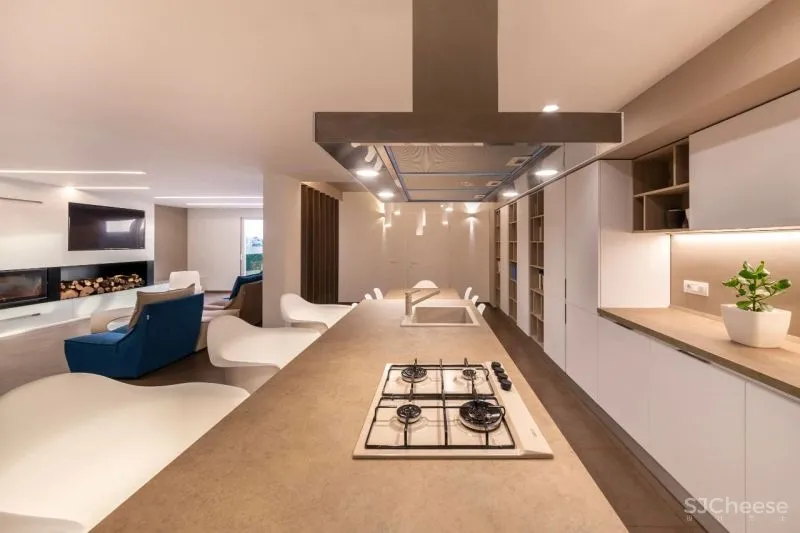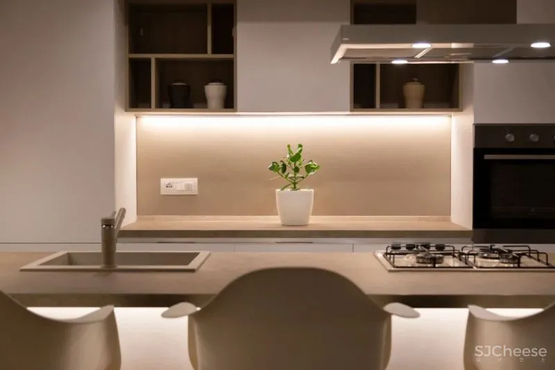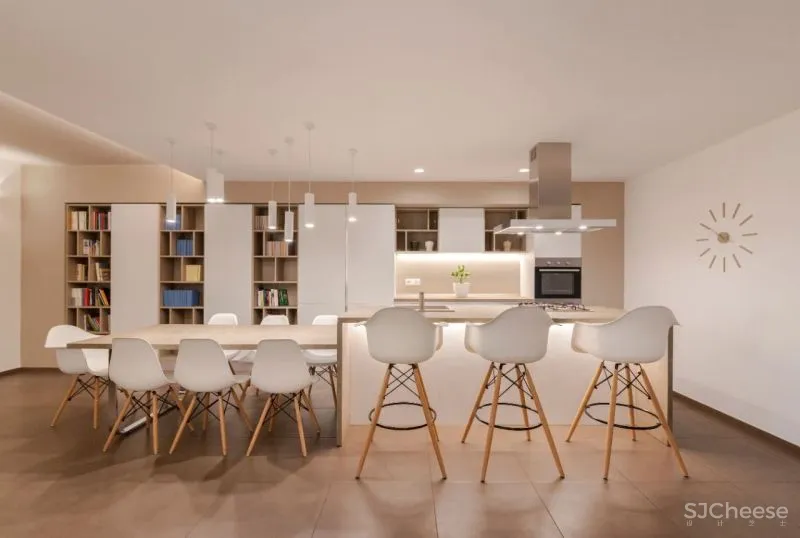 ,由Salvatore Spataro Architetto改造,分为两个区域:一个用餐区和一个起居区,厕所是两个区域之间的枢纽,用餐区的特点是墙壁长且与烹饪区混合在一起,形成了独特的架子与衣柜和厨房的门交替放置。