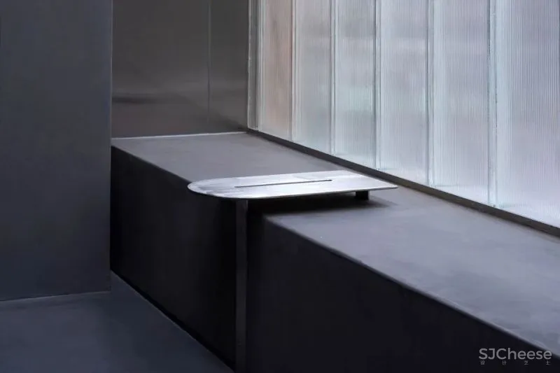 项目名称:新市古镇文创商品集合店项目 项目地点:中国 浙江 湖州 室内设计:DAS Lab 主要用材:水泥、U型波纹玻璃、拉丝不锈钢、雾面不锈钢、透明树脂板、碎石、灰色吸水砖、PVC地板 面积:室内91㎡/景观21㎡ 设计时间:2019.05-2019.09 建造时间:2019.10-2020.10 项目摄影:田方方 撰文:DAS Lab