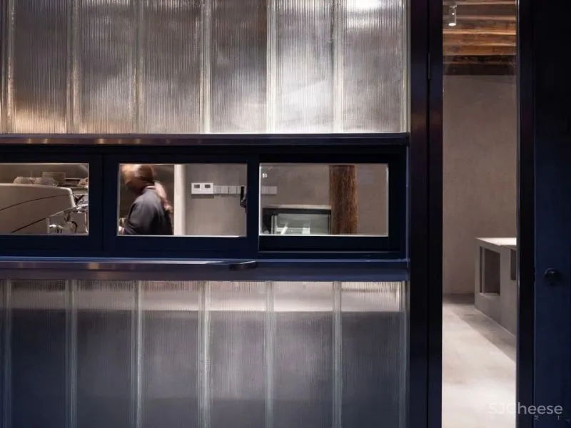 ▼磨砂玻璃模糊室内外界限 ©田方方