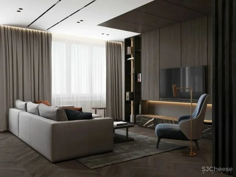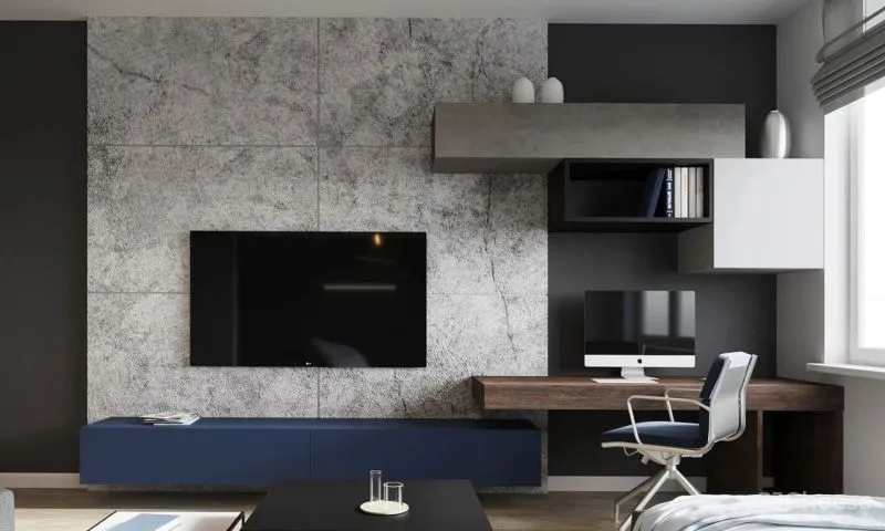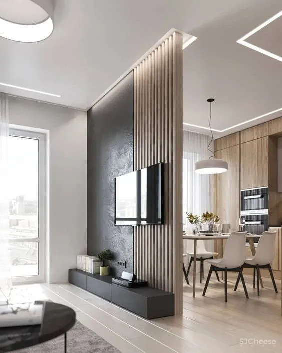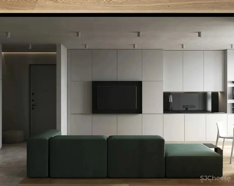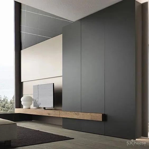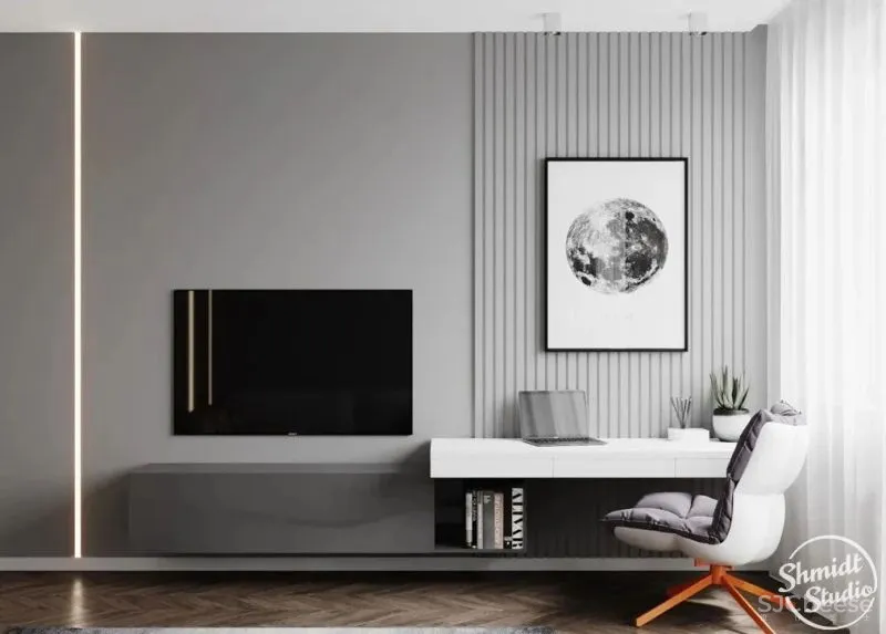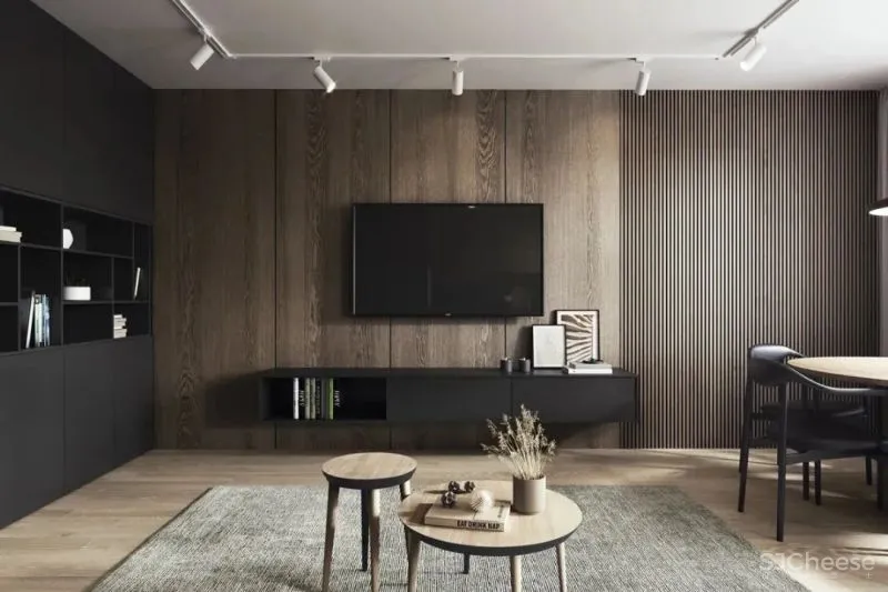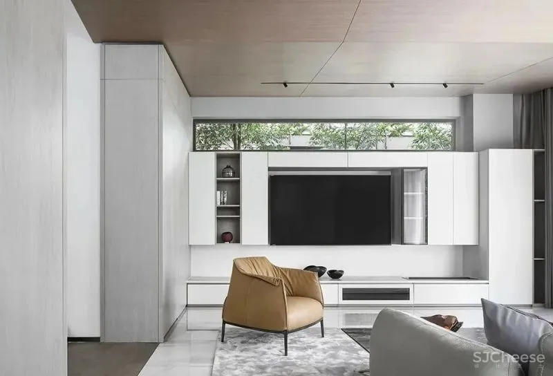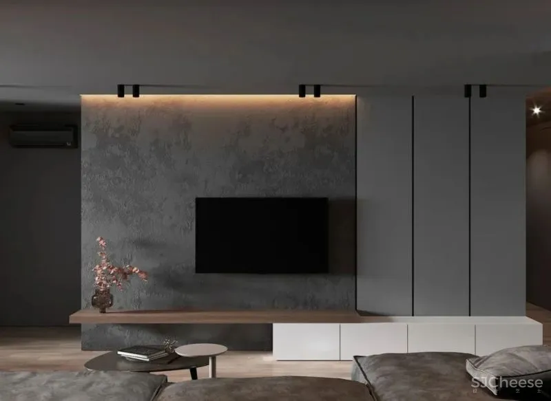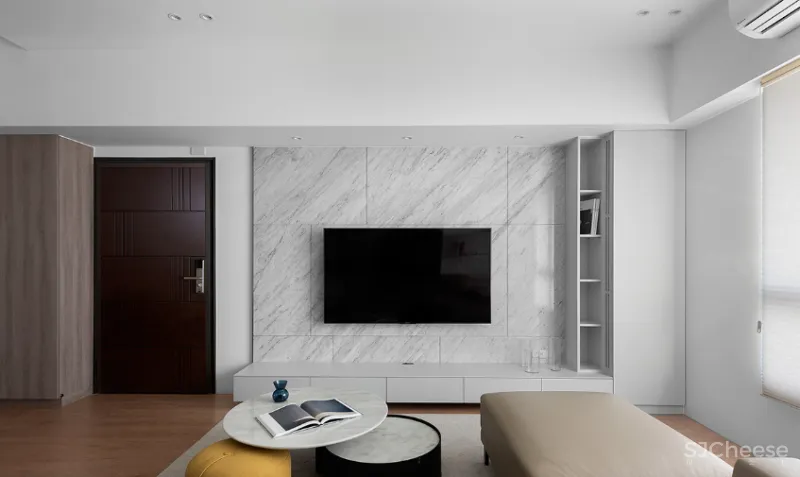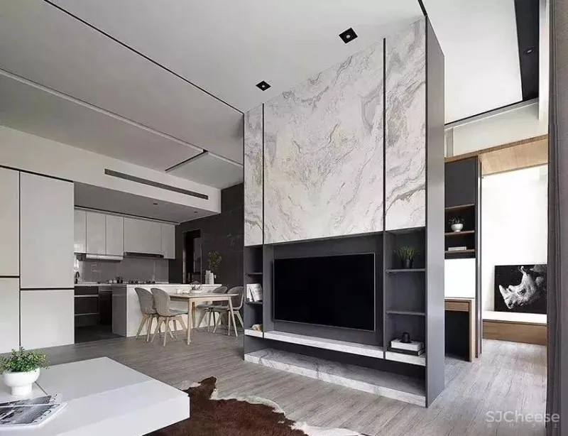 电视背景墙是这个屋子里面的视觉中心,最具特色的一个地方,是进门后的视觉焦点。现在买房的人们年轻化了,喜欢追求简约的设计
