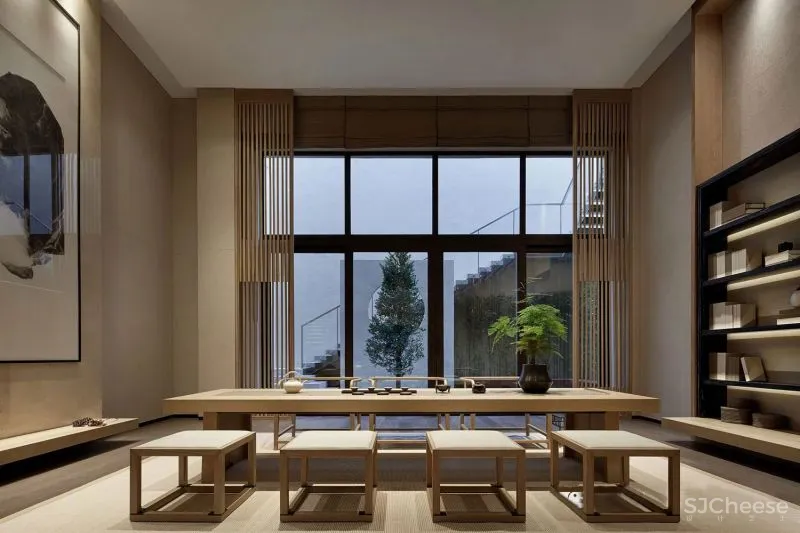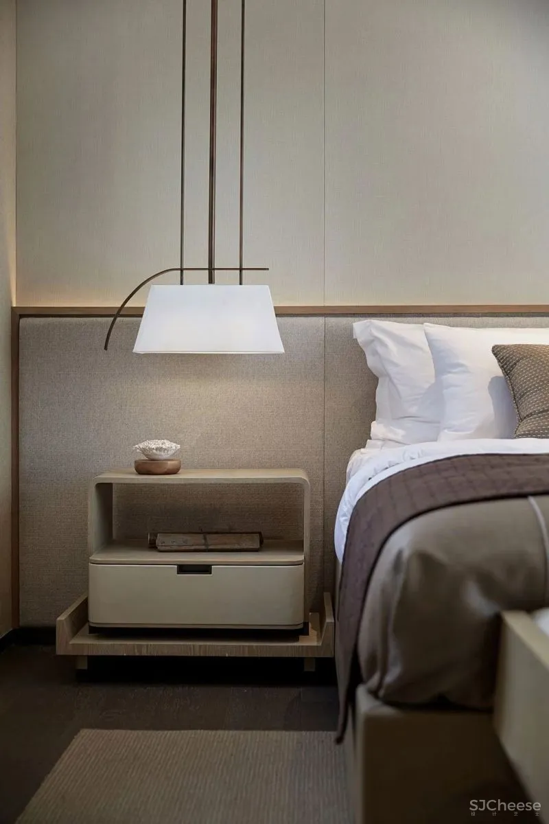 设计师力求从城到宅的“开放-半开放-半私密-私密”过程中,塑造一种节奏感,让城市的繁华与归隐的闲适之间,找到一种平衡点。提取传统中式文化的精华,注入现代生活之中,通过空间的营造,传递一种低调奢华,简约贵气的美。