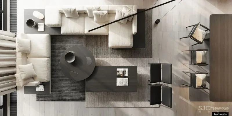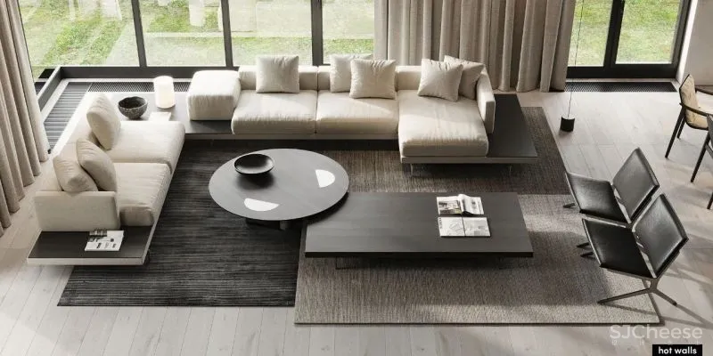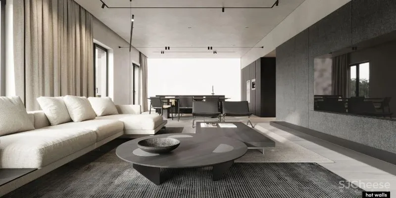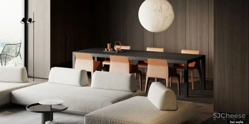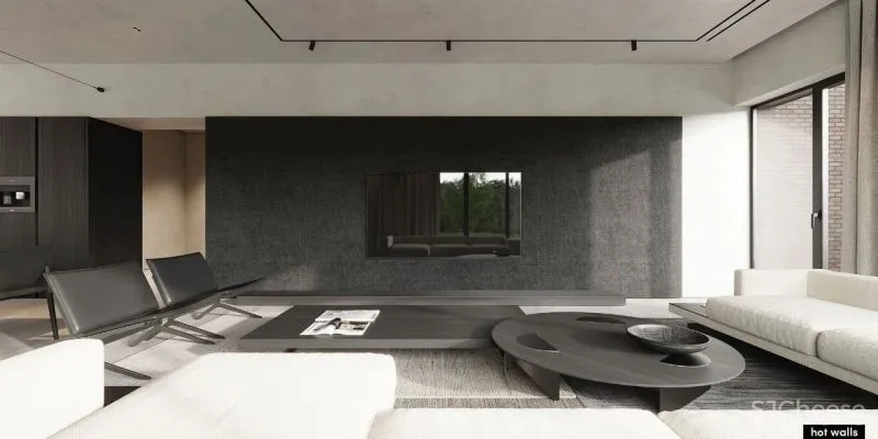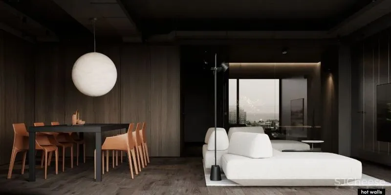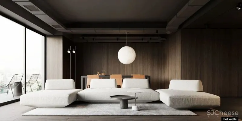 Hot-Walls adopted exquisite furniture and clean lines when designing the open space. The open space brings maximum comfort to all designs, which not only meets the needs of daily life, but also reflects the aesthetics of art. All the spaces in the living room are not artificial, highly rationally reducing the elements of decoration and color, showing the beauty of handwriting and the beauty of modern minimalism.