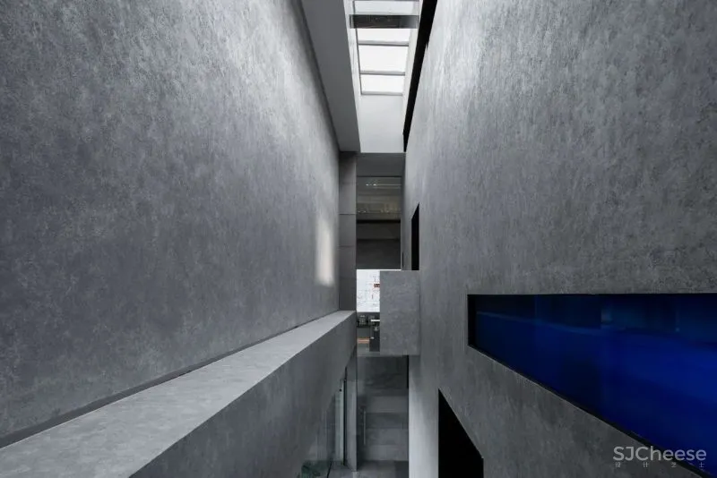 如何弱化一栋建筑空间作为一个存在的独立个体,从而使其尽可能地融入其所处的空间环境,是设计师一直以来面临的一个问题。其中的一个解决措施,可能是通过将墙面、顶面、门洞及其他各种元素组合在一起,并试图减少材料类别的方式,来实现的。在这样一个设计环境,艺术展示空间要么缩回白盒极简主义,以展示为主体;要么就是尖叫“毕尔巴鄂效应!”,创造本体的艺术特征。而我们的空间试图尝试找到一个室内既可以保持强烈的身份感和场域,又可以在最高程度上促进艺术展示。