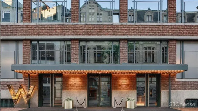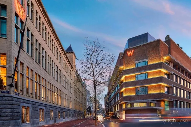 阿姆斯特丹W酒店的原是一个yin的办公楼,1925年由建筑师Joseph Crouwel设计,建筑风格受到美国建筑大师弗兰克·劳埃德·赖特的影响,使用了大量的红砖。