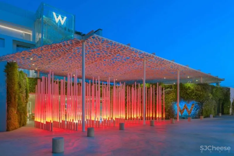W酒店以主打设计和年轻的生活方式为卖点,融合成“W”这个字母进行表达。