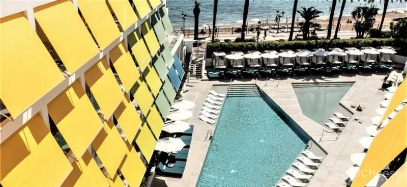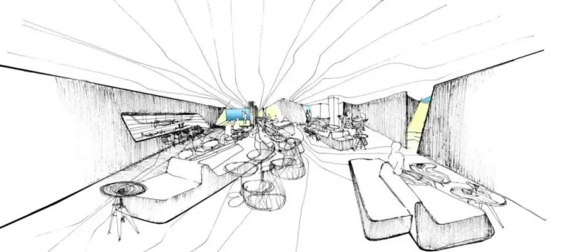 宽敞的室内休息室以抬高的平台为特色,使客人能够在欣赏从滨海广场到室外游泳池和大海的美景的同时,有着放松交流的环境。