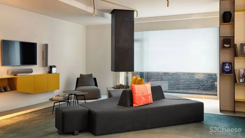很多建于街边的酒店可能都会面临临街噪音的问题,借力于这个内部庭院,B K 干脆把所有的高级套房都放在了朝向庭院的一侧。