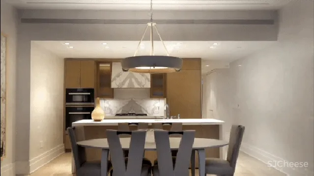 顶层公寓包含4个卧室,5个浴室。结合充足的在自然光线,室内增加定制的照明系统作为设计的一环,让空间更加通透明亮。