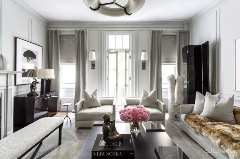 在回味20年代COco Chanel的巴黎风情中,永恒优雅成为突出的重点。正对客厅的窗户被黑色木框包裹,与圆形窗打造典雅的风格。优雅的沙发曲线与质感散发着迷人的气息。