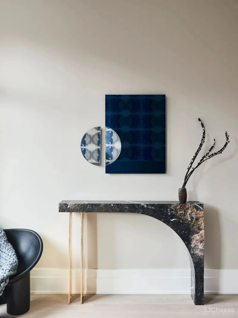 金属、灰、蓝之间相辅相成,清澈的色调及结构还原东方的清冷静谧,同时又不失华丽的独特风格。
