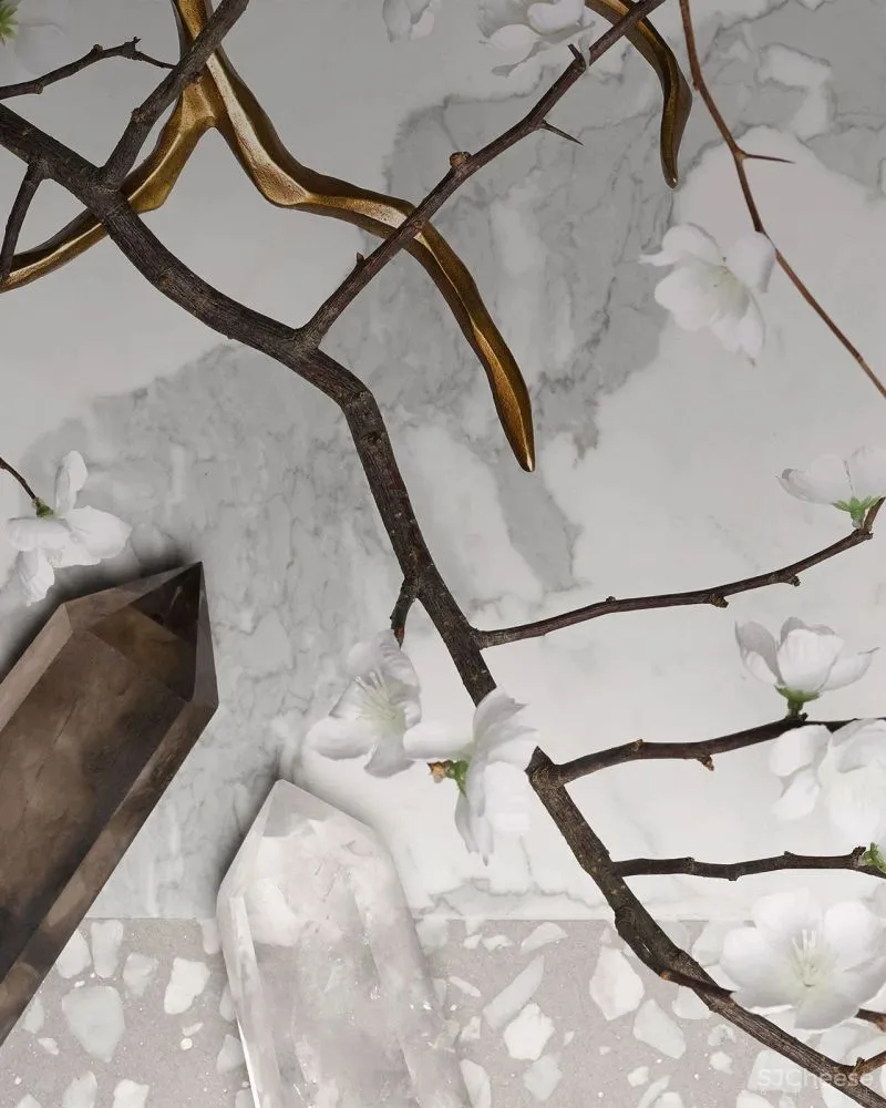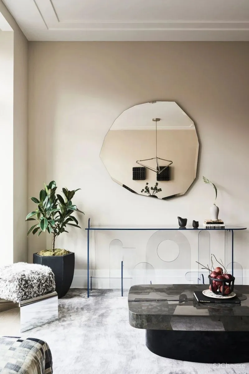 卧室通过造型独特、含蓄的色彩表达表达一片宁静的空间。大理石的边几拥有独特的炸裂般纹理,打造既有现代风格,又与历史藕断丝连。