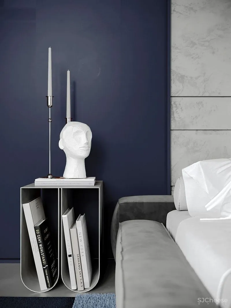 ,通过蓝色调的时尚设计,小小的空间也显得极简而端庄优雅。