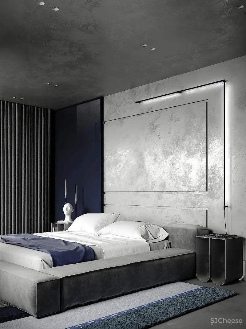 90㎡公寓设计,在明亮丰富的落地窗的空间里有着充足的采光保障,因此大胆地采用了高级灰的空间主题,表达出现代人的简洁气质。