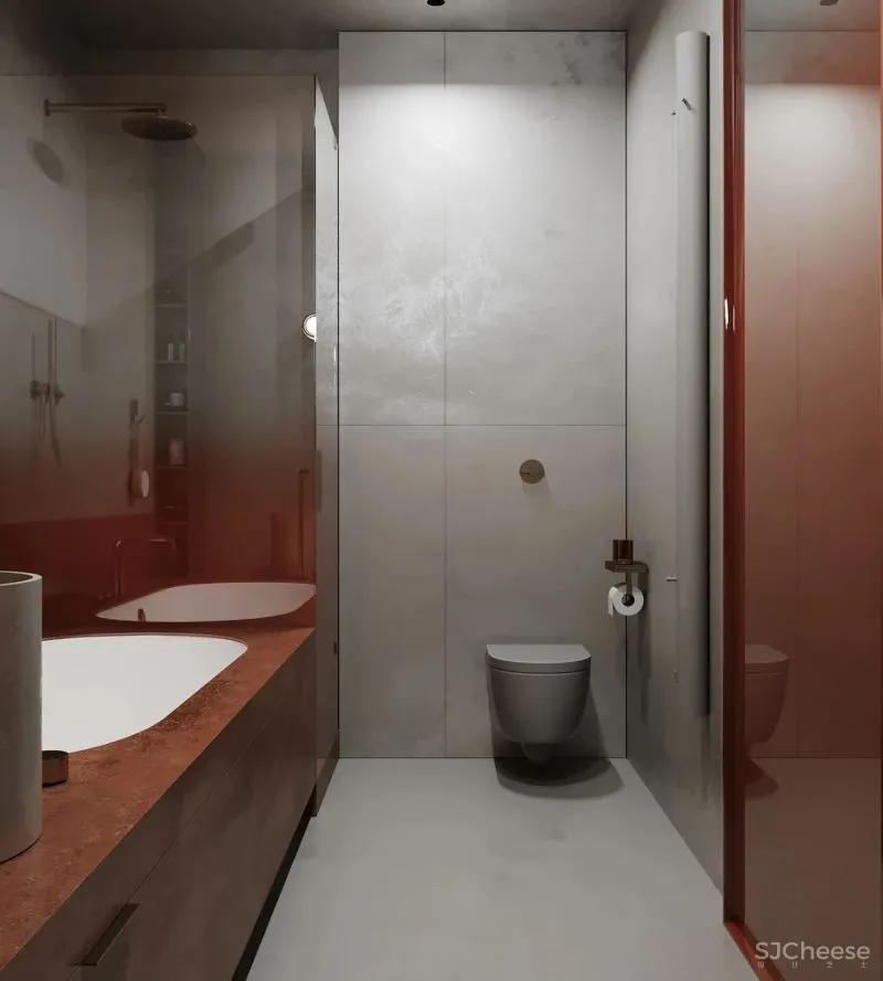 简约的灰色使得卫浴空间也充满极简的视觉感。