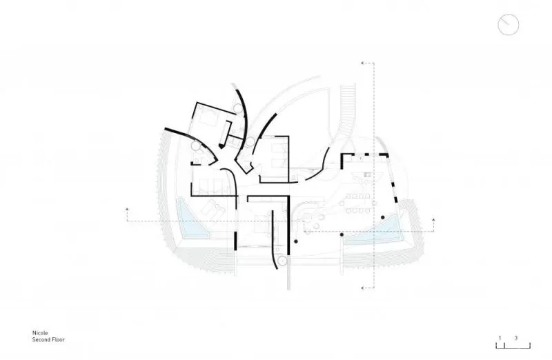 “当我们摆脱传统的90度角时,我们创建了非常特别和独特的房屋,使用弧形墙使我们能够以更完整的方式解析空间,并以指数方式改善了视野,朝向和交叉通风。”