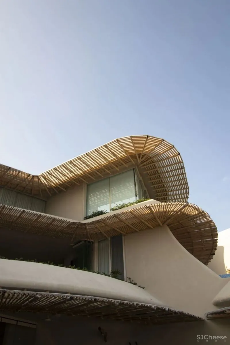 Zozaya Arquitectos说:“该项目的建筑风格集中于在地面和外墙上使用弧形墙。”