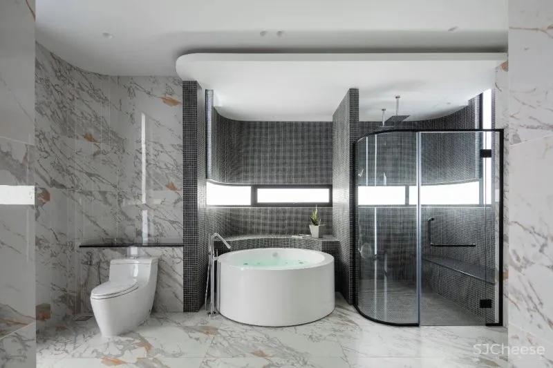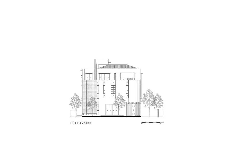 设计术语:圆角是指圆角或边缘。房屋的主要四个角被圆角化,以软化原有的立方体。圆角的设计在外观上实现了建筑的整体性和流线型。然后,建筑体量被配置为响应热带,指定的项目和它的邻居减去了开放露台和空隙的体积。