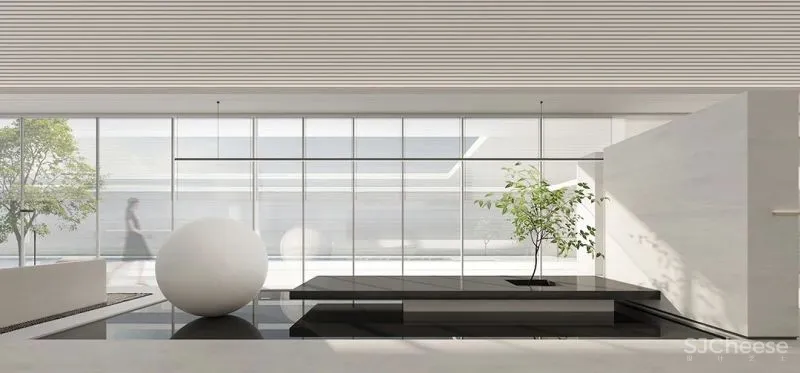 一贯坚持“纳自然之形,建空间之意”理念的 INNEST 意巢设计,担纲其售楼处的室内设计。设计师基于产品“精艺生活综合体”的属性,落笔于自然光影与空间的艺术逻辑,联结日常生活与超验美感,着力构建一个“光与艺术的展览馆”。结构化的体块语言、诗意化的艺术细节、穿透关系的自然光影,交织出一个简洁纯粹的公共艺术空间,予人观者一种超越物质与文化意义的自由体验。