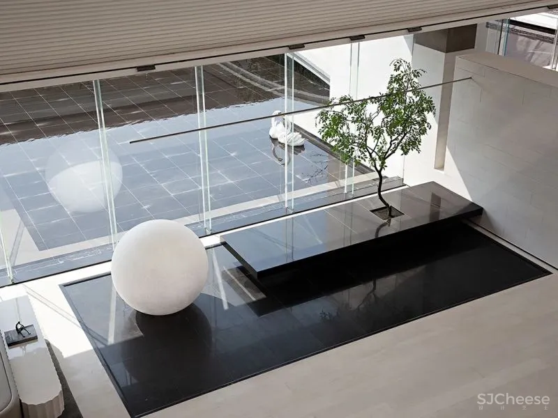 开阔的格局、雅致的灰度、纯粹的光影、留白的艺术……设计师坚持以简练的笔法,抒写空间的形态美感与意境秩序。临窗一隅,设计师以造景的方式,在室内空间中营构自然、呼应户外,同时将天光云影、风拂树影、日月清辉纳入极具时间性的诗意里。
