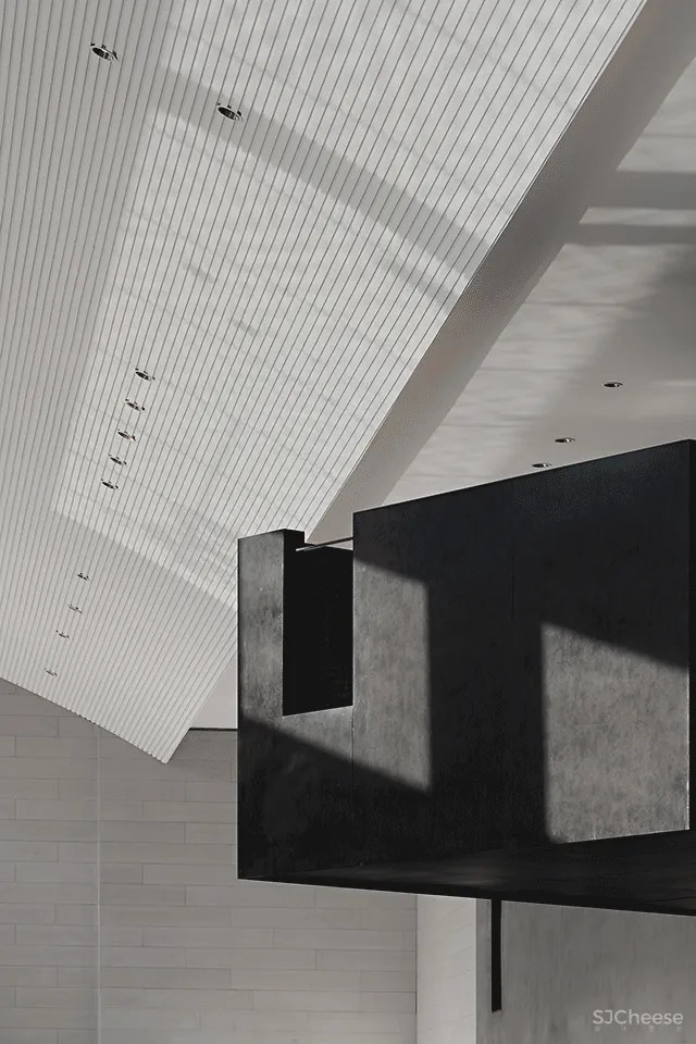 光影、艺术、与光影的艺术互为妙笔,以相互渗透的关系,贯穿于空间主线之中。现代艺术空间的美学基因是与光影相生、与纵深的时间性相随,消减复杂,注入温度,予人轻盈而灵动的观感。