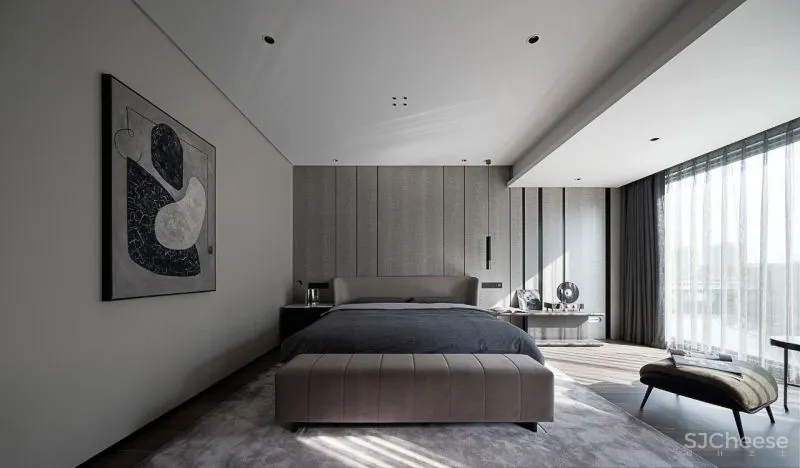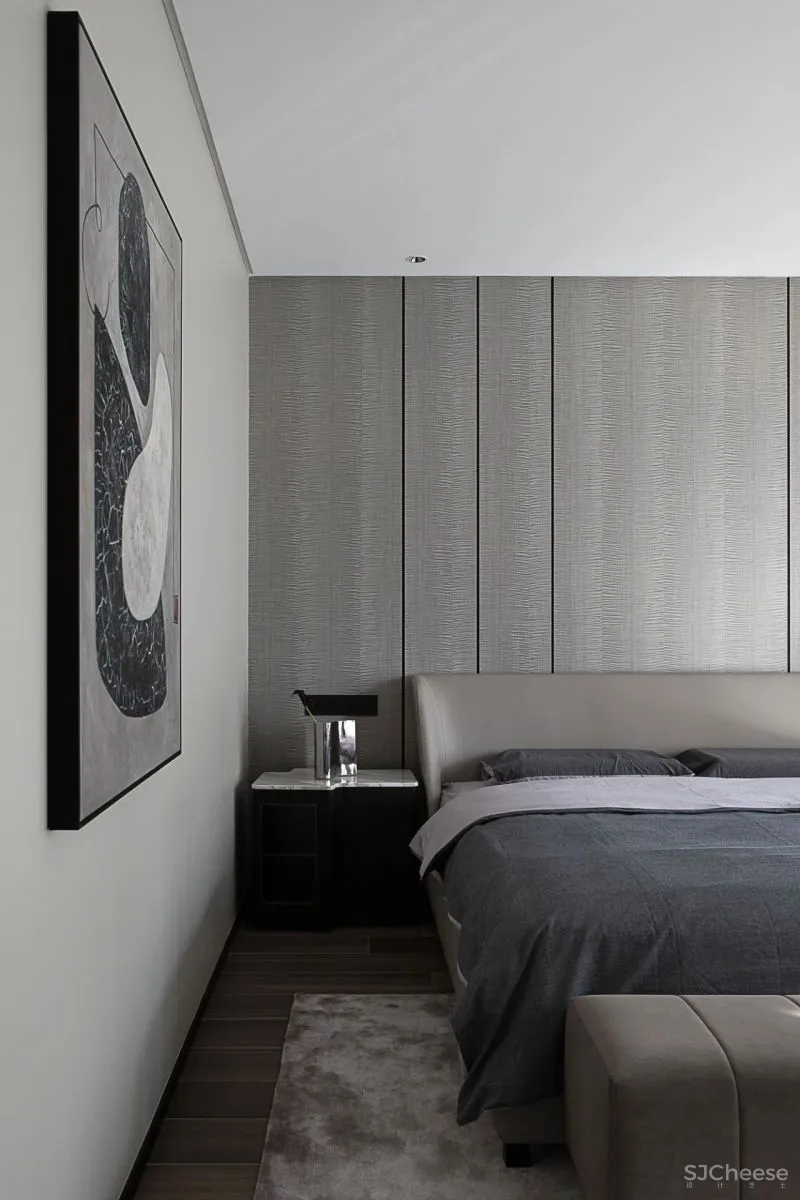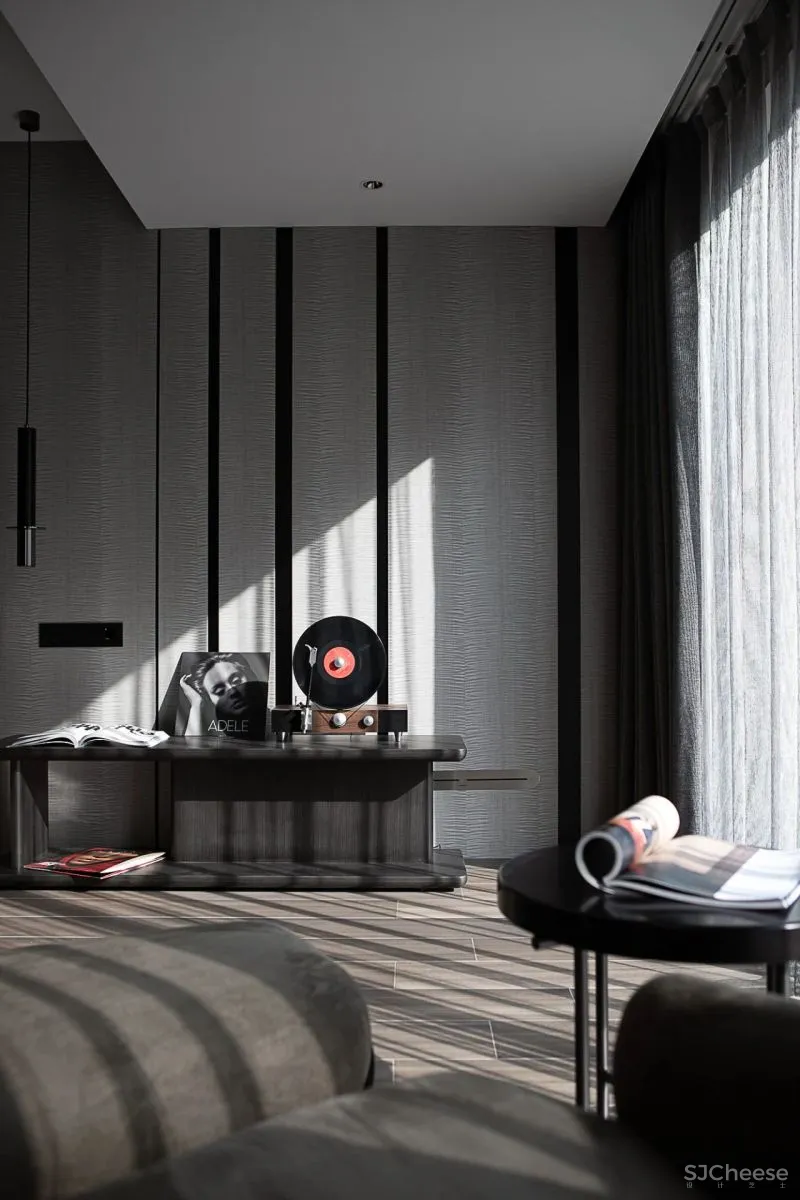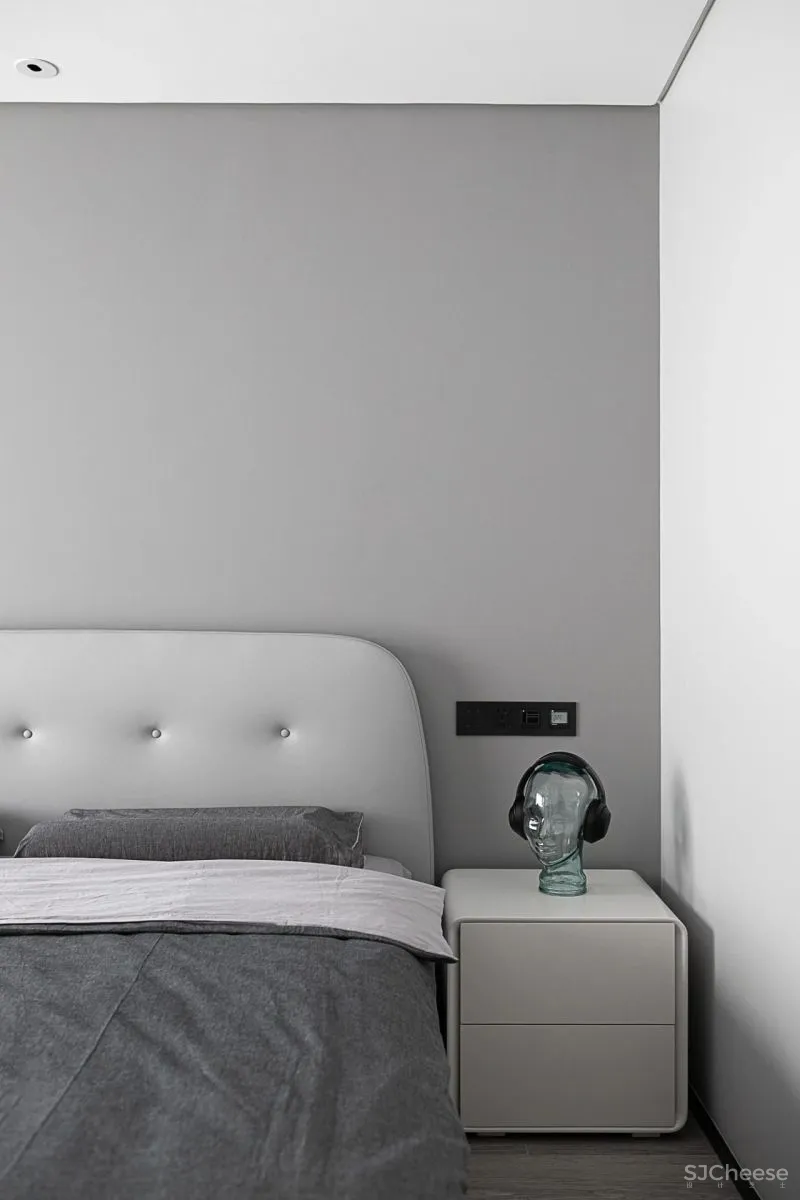 大面积的灰色墙面,搭配整体灰调的地面,目之所及是泼墨般的浓重与沉静,呈现极度和谐的色彩叠加。