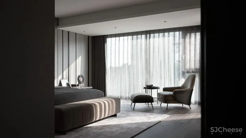 无论是客厅中造型各异的沙发布置,还是卧室中左右不同的床头柜样式,细节上的一点点改变,便将空间秩序全然颠覆,仿佛与这个世界的无法预测,变幻无穷达成某种共识。
