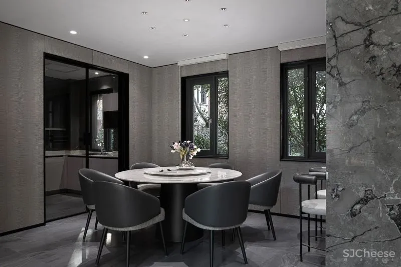 餐厅链接厨房与客厅,功能与审美兼具、动静清晰,构筑这个空间的一体两面,这既是业主对生活本身的追寻,也是生活品质的自然流露。