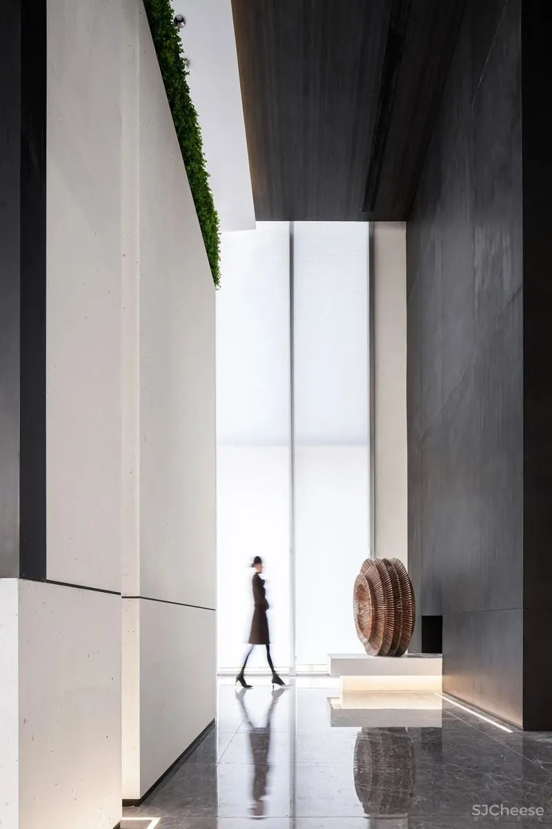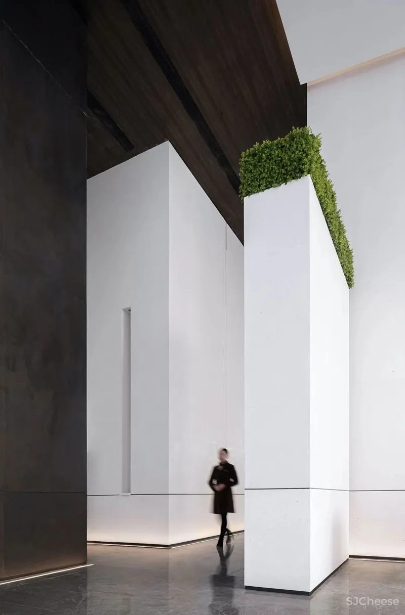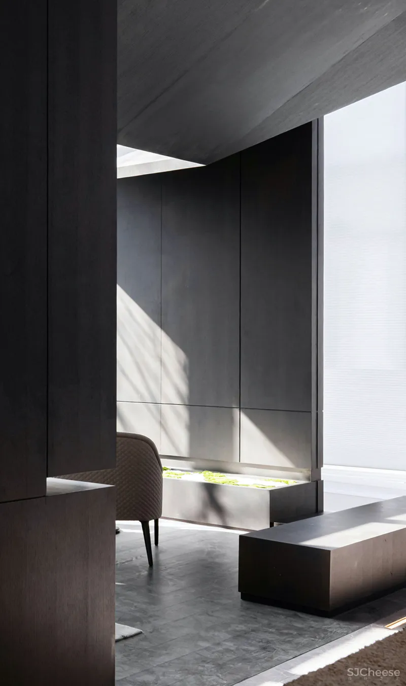 结合项目诉求,服务与被服务空间的处理是该案平面组织上的一个重点。同时,利用层高,创建立面结构,打造体块厚重感,并结合材质、色彩、光线的应用,实现丰富、饱满而有情感与张力的空间体验,成为本案的挑战与机遇。