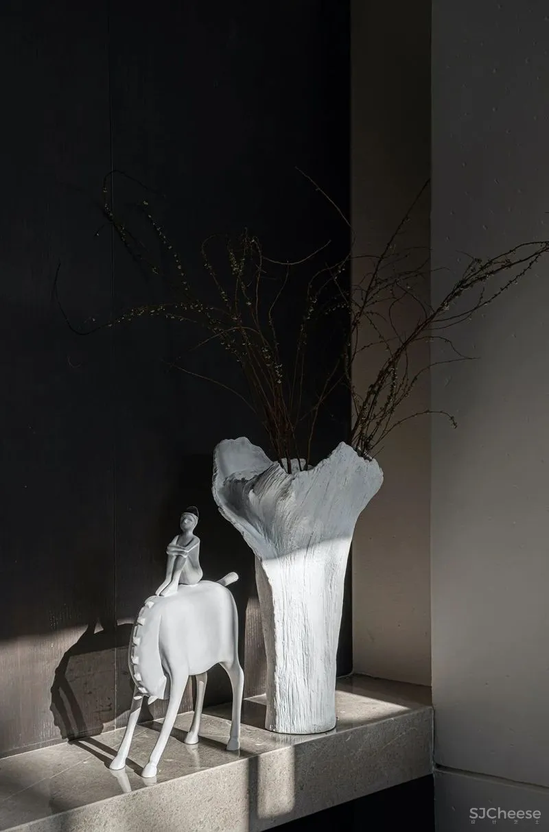 In the interior design, almost all the space scenes have given a pass to black, white and gray, it does not attach to the popular, in the noisy trend, quiet and powerful, with a calm and decent home wind, low-key and fully show the edge, the extreme confidence.