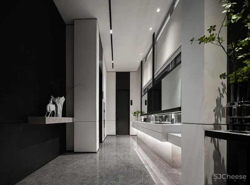 在室内设计中,几乎所有的空间场景都给黑白灰开了通行证,它不依附流行,在喧嚣的潮流中,静默有力,具有沉稳得体的主场之风,低调又尽显锋芒,自信之极。