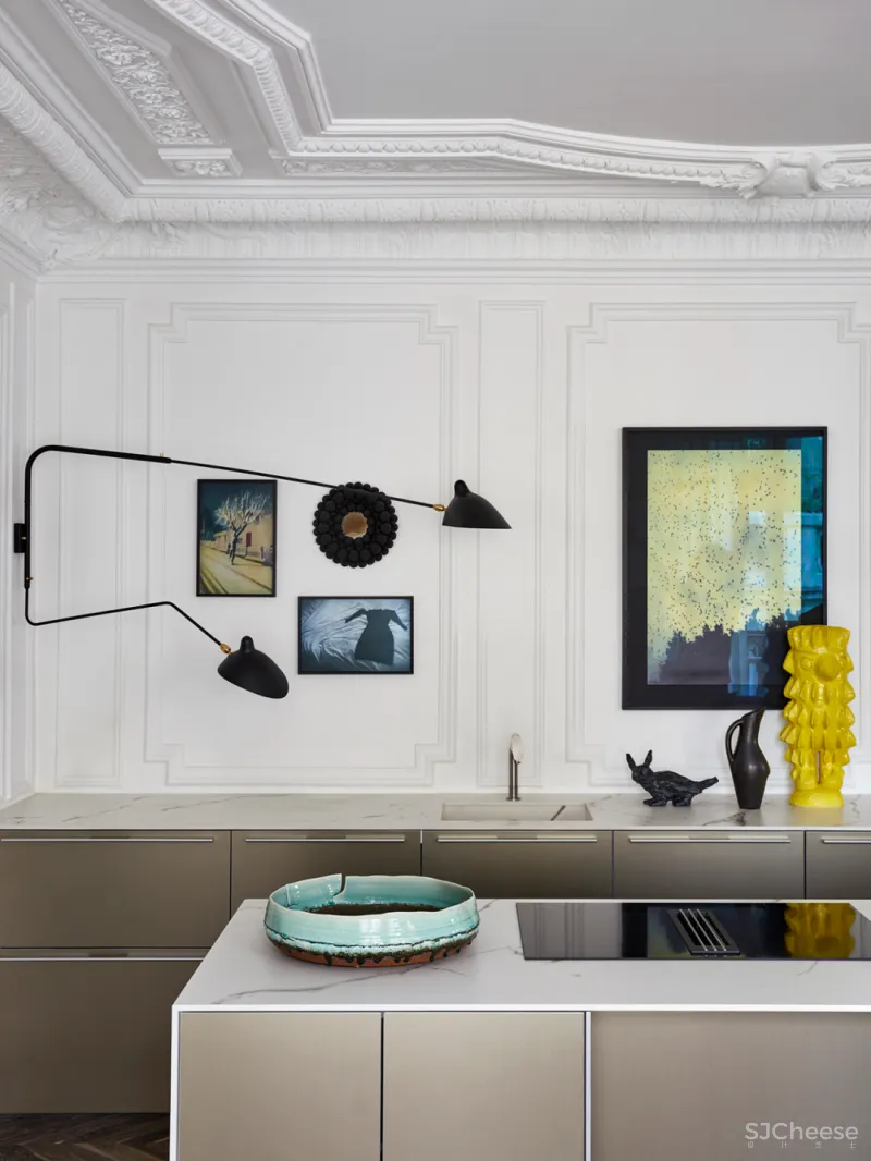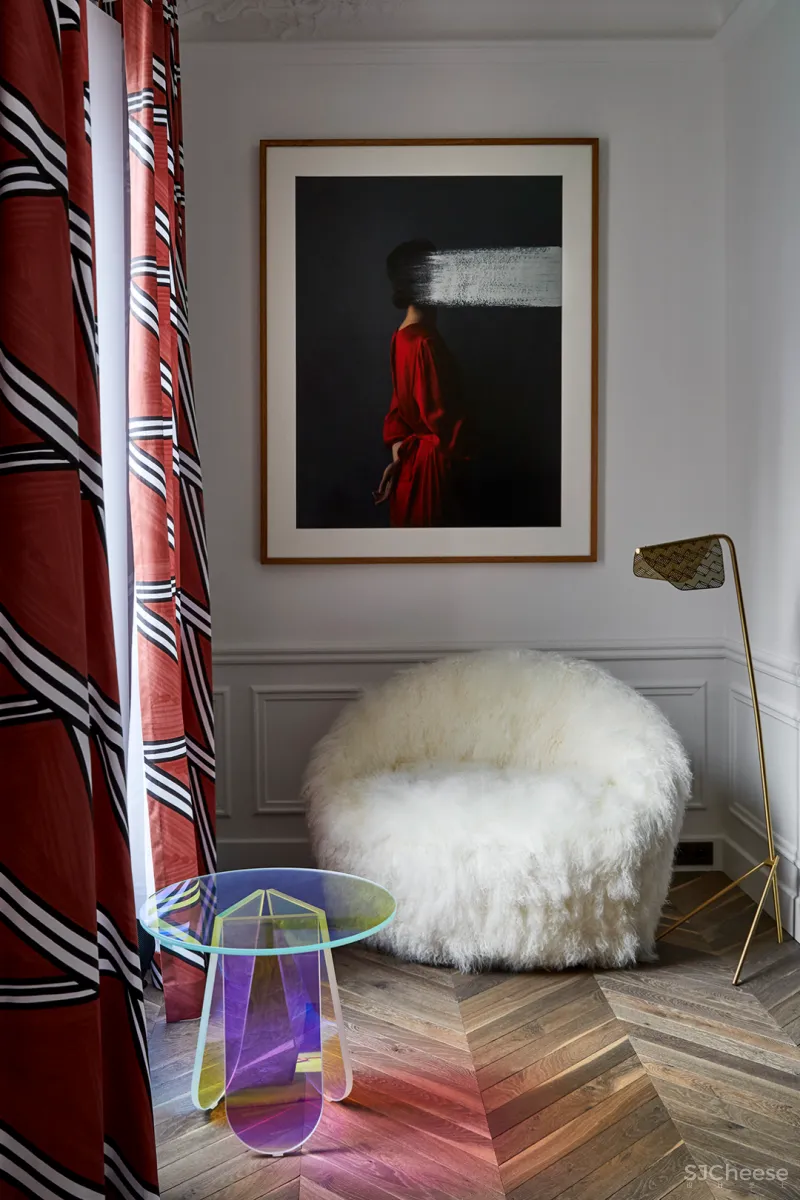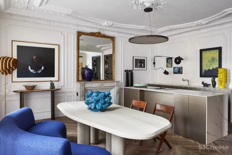 这套公寓位于法国,是一座拥有浓厚历史烙印的奥司曼式公寓,由Claude Cartier负责室内软装。这套公寓的色彩丰富却和谐统一,和谐的色彩与不同造型的精致家具,为空间带来了优雅高级的艺术美感,是一座伟大的艺术公寓。