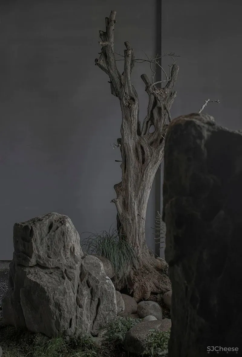 近两年,随着庭院这一块从设计到施工以及选树、选石的一体化需求,和对庭院的舒适性、仪式感、观赏度以及要求四季中庭院的不同变化,面对这些越来越具象的诉求,加之受江南庭院多年熏陶,设计师一直想在庭院营造做点有意思的项目。今年初,厐喜受朋友所托得以营造会稽山中一处,面朝湖水,背靠山。