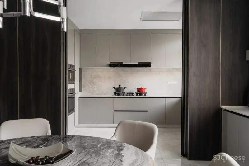 宽敞的餐厨空间设有中、西厨分区,以满足不同场景下的使用需求。
