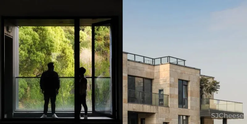 高窗的设计是一个双向需求,外部向内部暗卫提供采光,而内部光源为外部过道带来氛围照明。